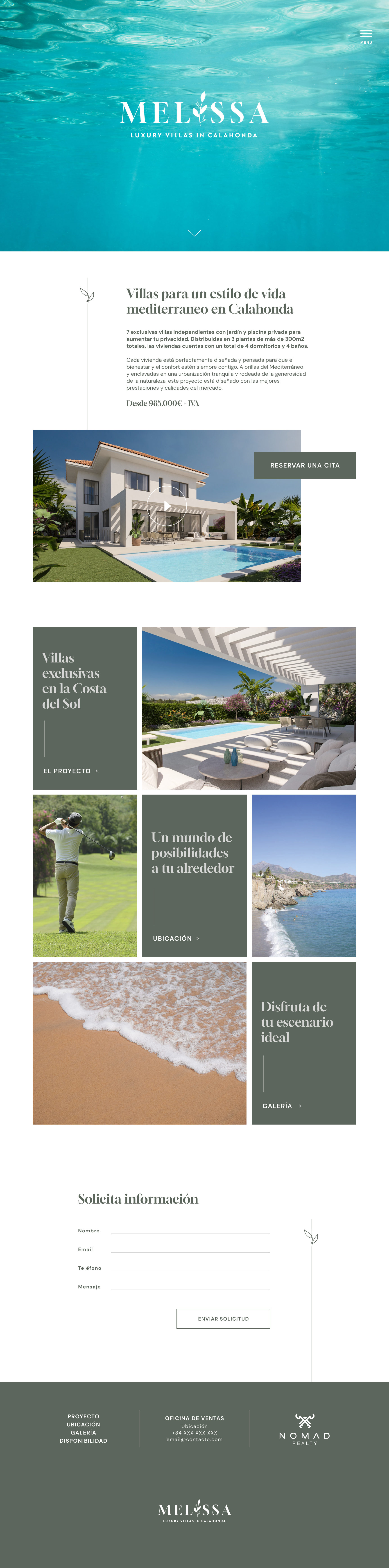 Avanza Comunicación commissioned me to design and develop the UX/UI for Melissa Luxury Villas, a premium real estate brand specializing in high-end vacation rentals. The goal was to create a sophisticated WordPress website that conveyed exclusivity while remaining easy to navigate for potential clients.
